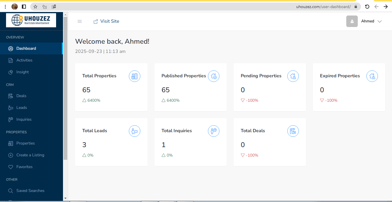 • Ability to add real‑estate agencies and the agents linked to them.